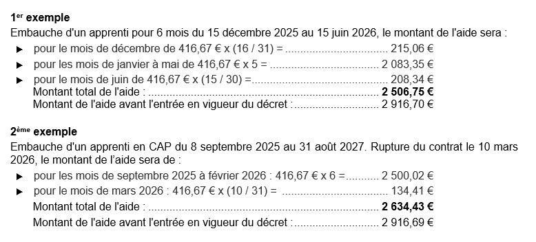 Vous remarquerez qu’il n’y a pas de proratisation pour le mois de septembre 2025 car le décret n’est entré en vigueur que le 1er novembre 2025